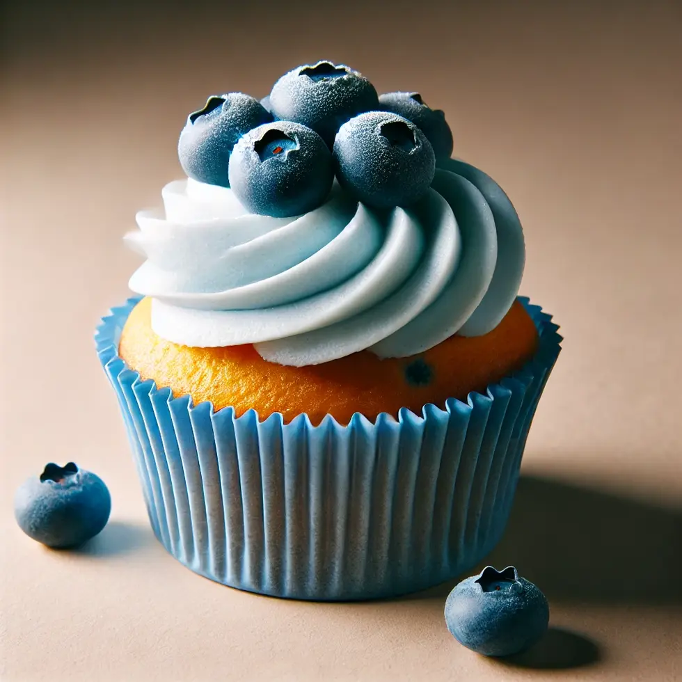 Een blauwe bessen cupcake is een heerlijke, verfrissende lekkernij die de zoetheid van de bessen prachtig combineert met een luchtige, zachte cake. De cake zelf heeft een lichte vanillesmaak, met de blauwe bessen die door het beslag heen gemengd zijn, krijg je bij elke hap een burst van sappige blauwe bessen.